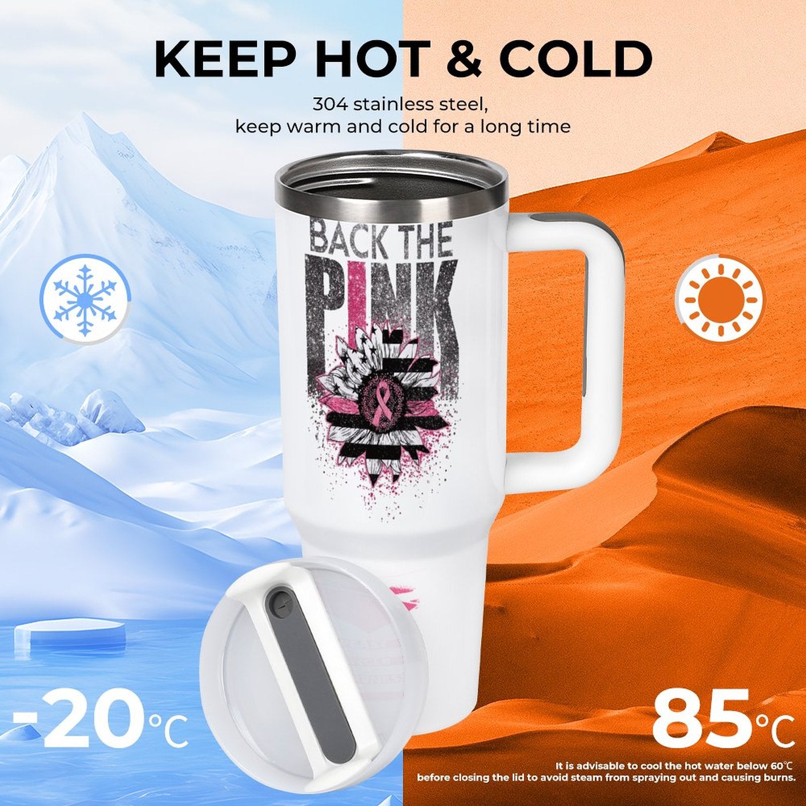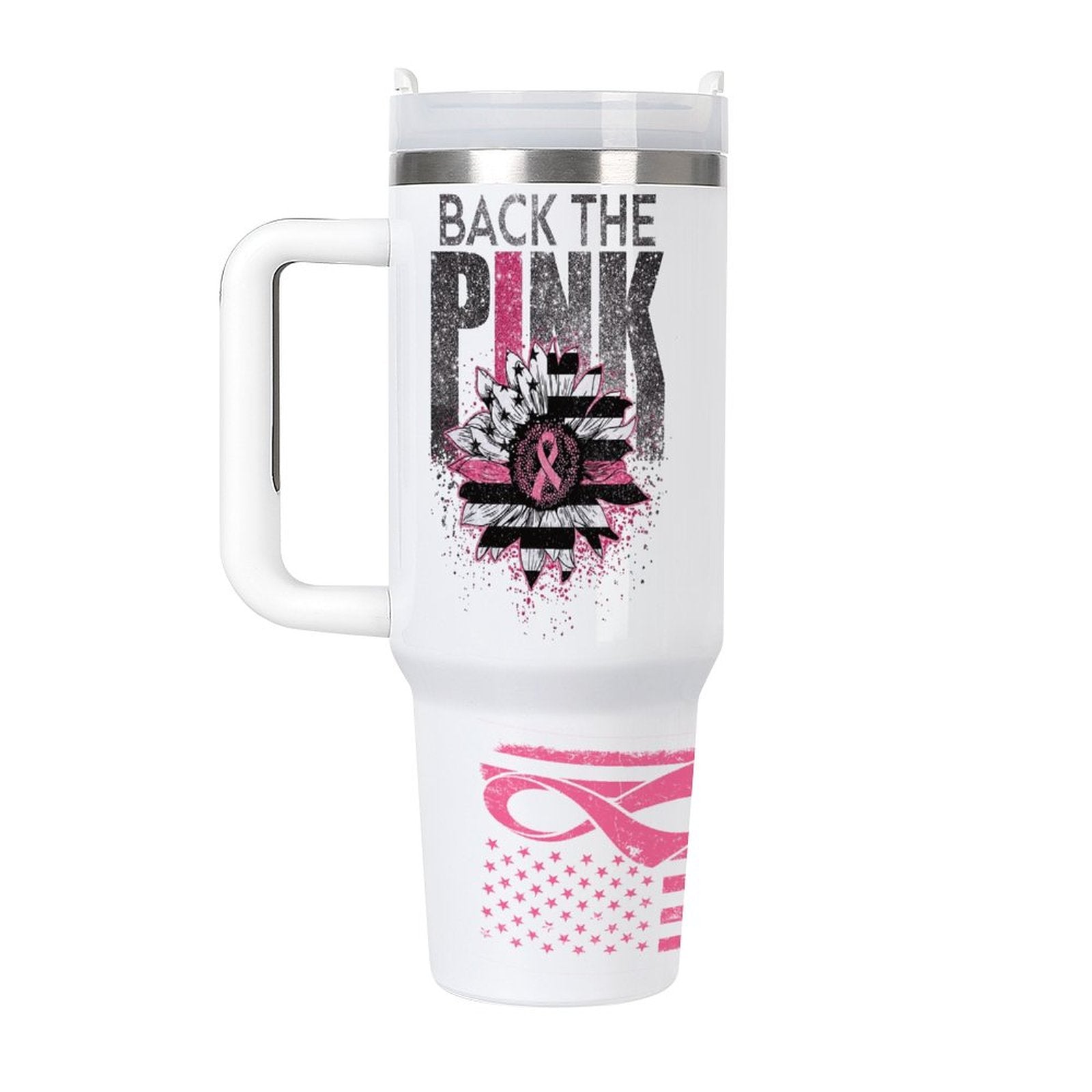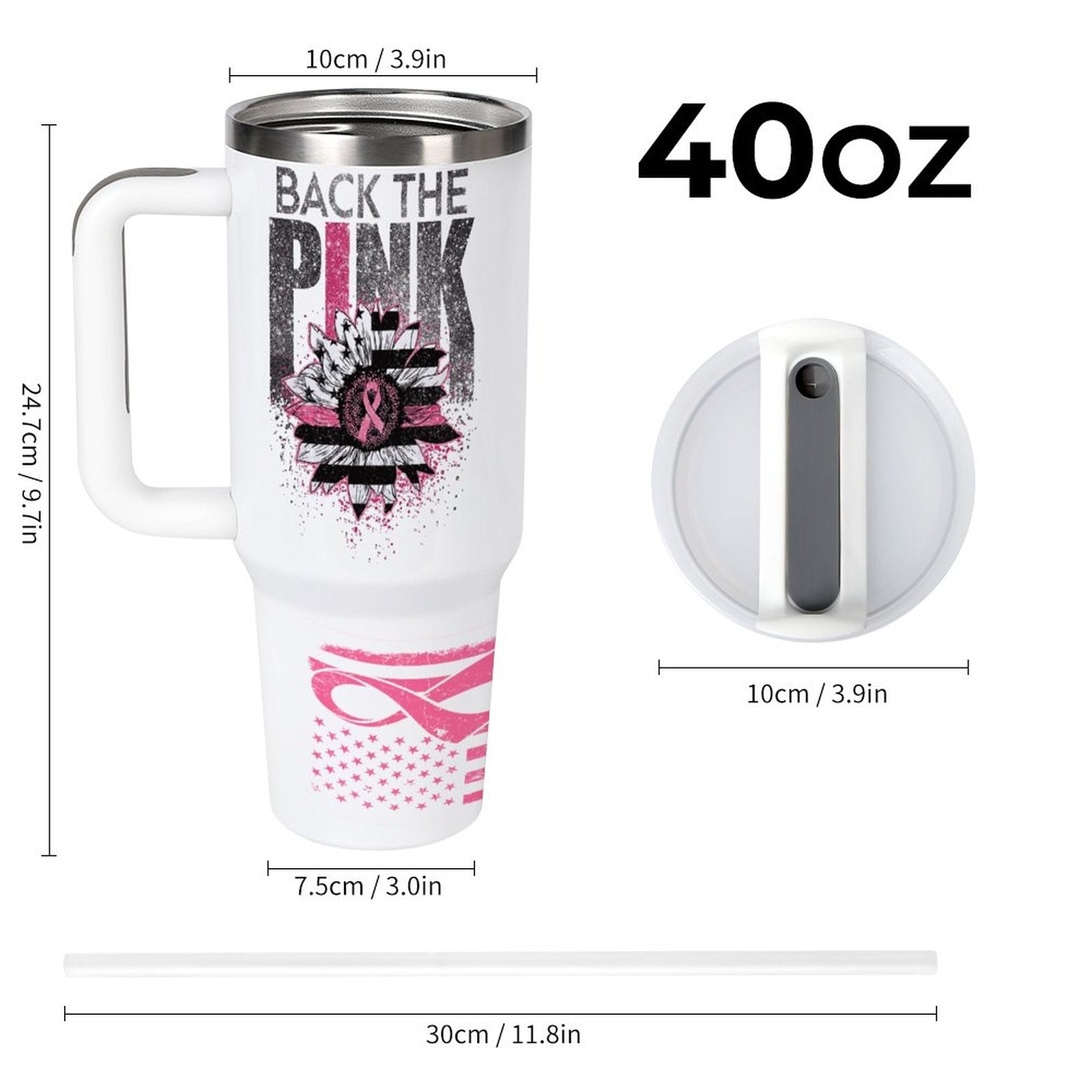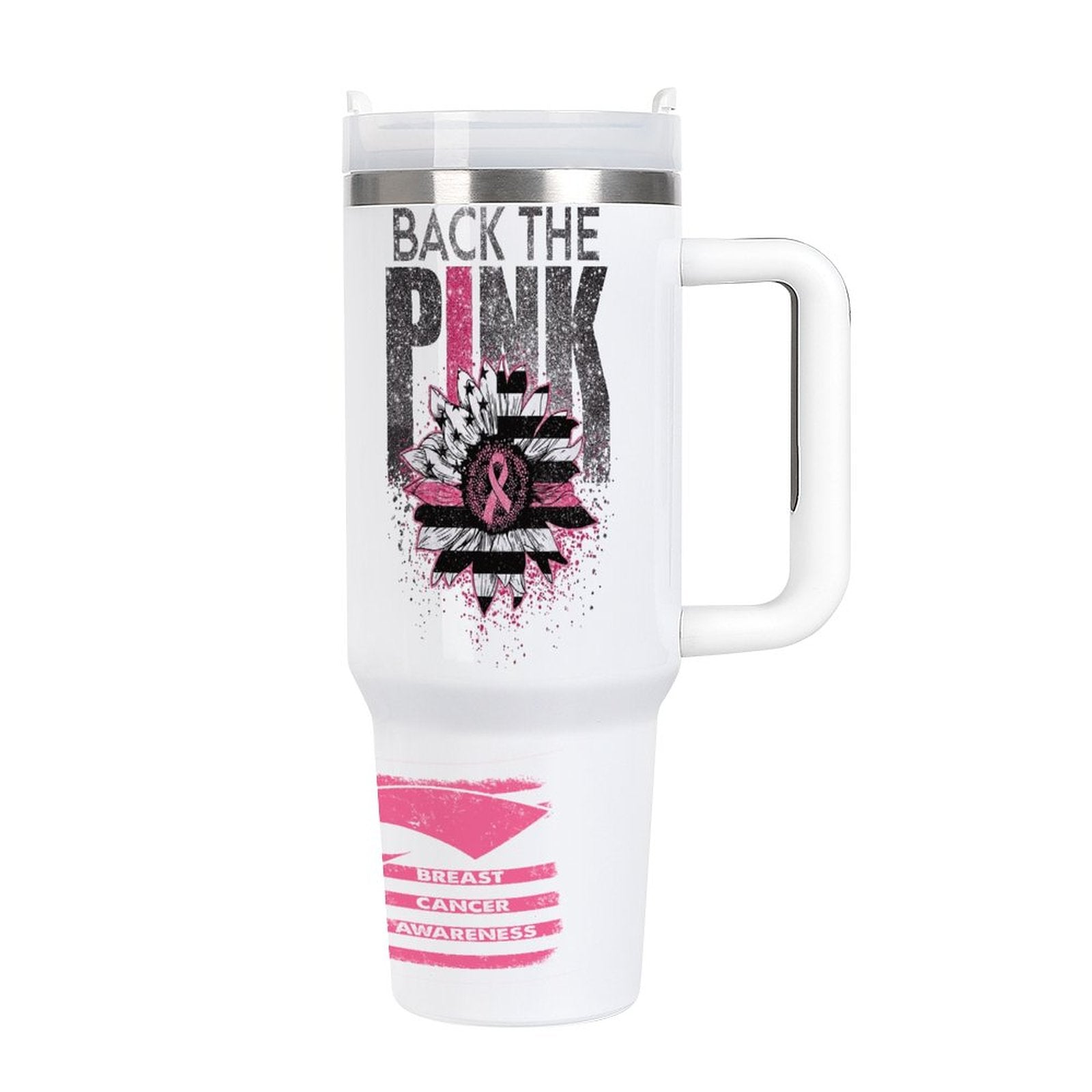Back The Pink 40oz Stainless Steel Insulated Tumbler with Handle and Lid