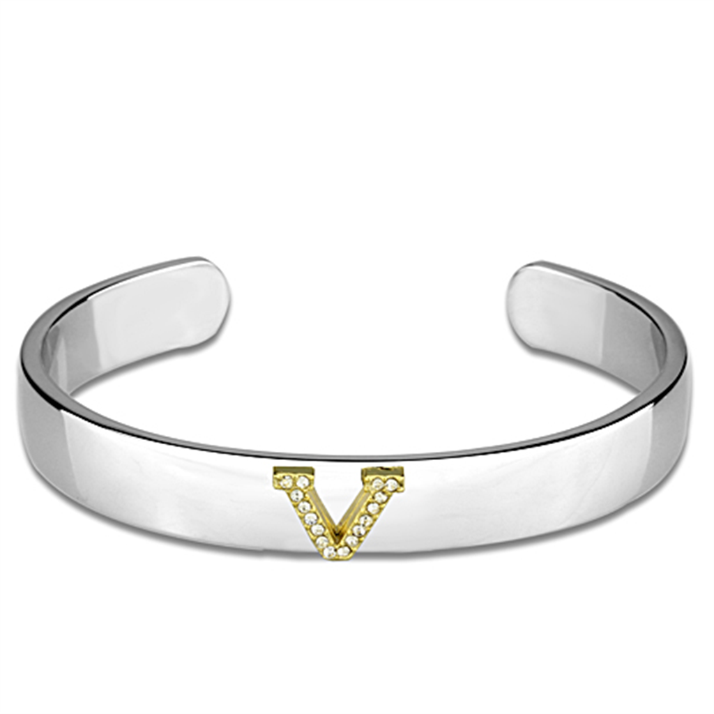 LO3632 - White Metal Bangle Reverse Two-Tone Women Top Grade Crystal Clear