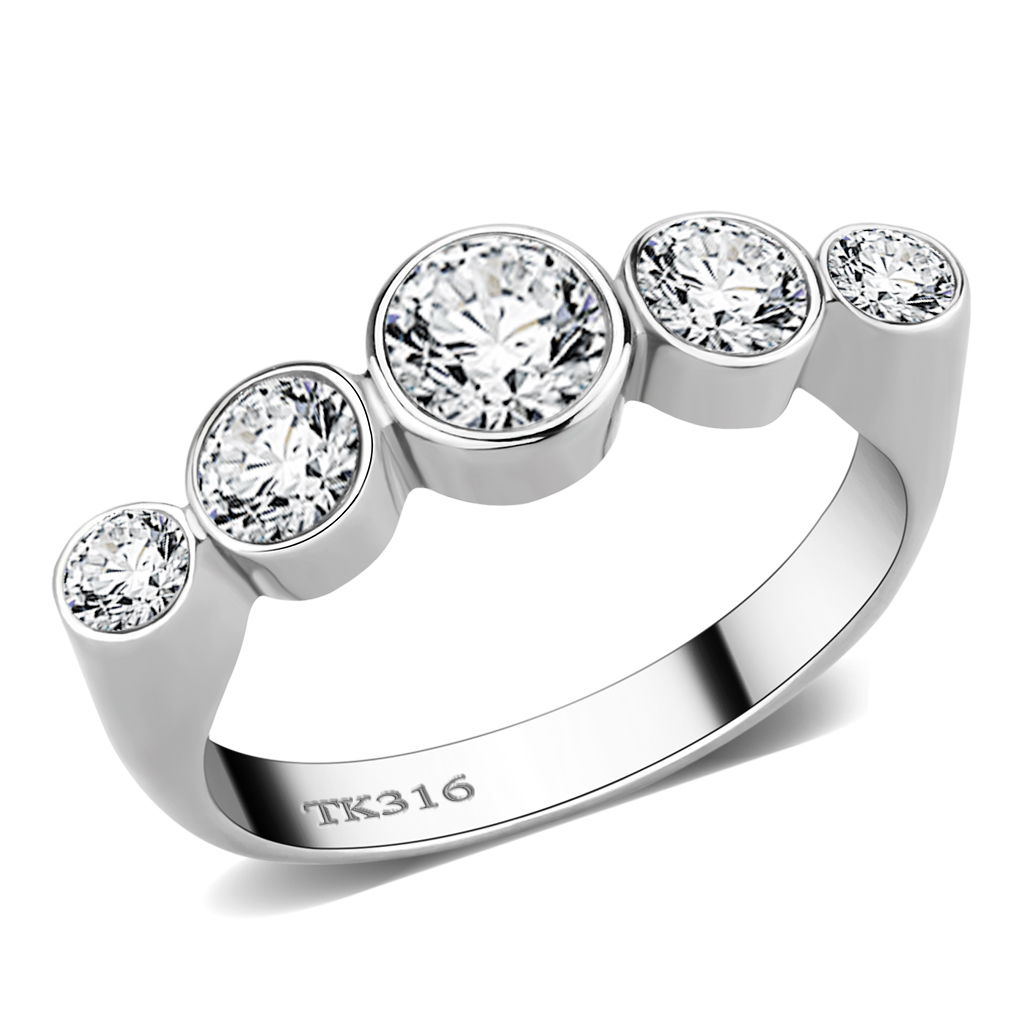 TK3697 - Stainless Steel Ring High polished (no plating) Women AAA Grade CZ Clear