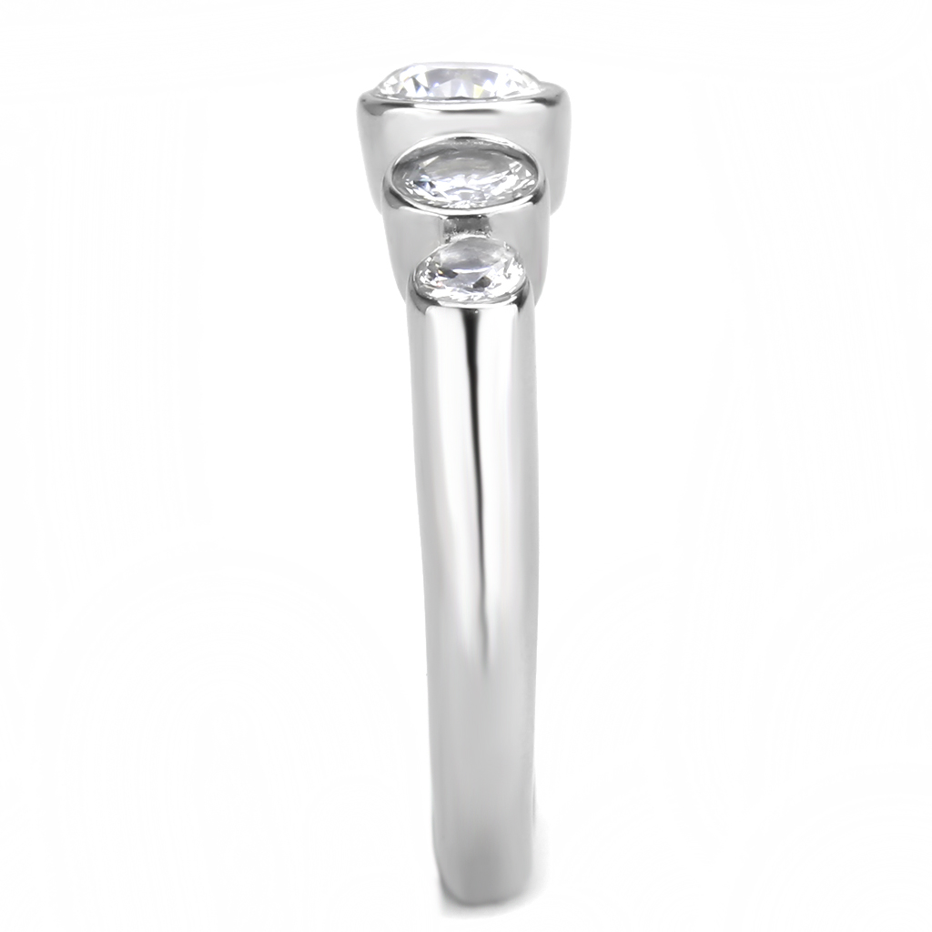 Ring,Stainless Steel,High polished (no plating),AAA Grade CZ,Clear