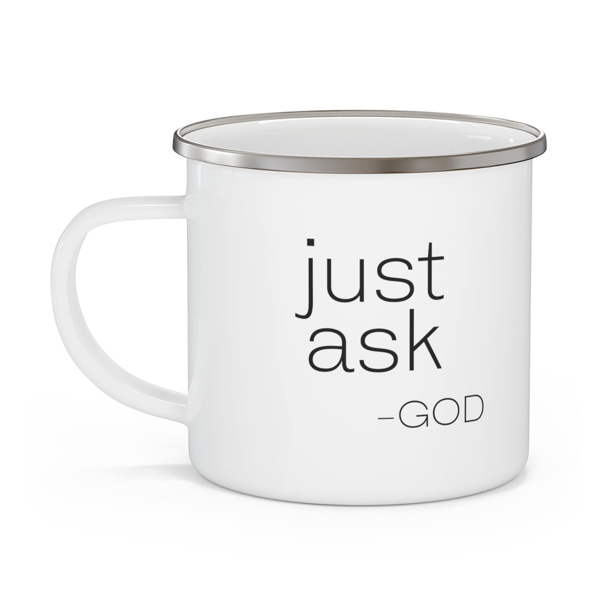 Enamel Camping Mug, Say It Soul, ’just Ask-god’ Statement Shirt, Christian, Religious, Inspirational, Christian Attire And Activewear