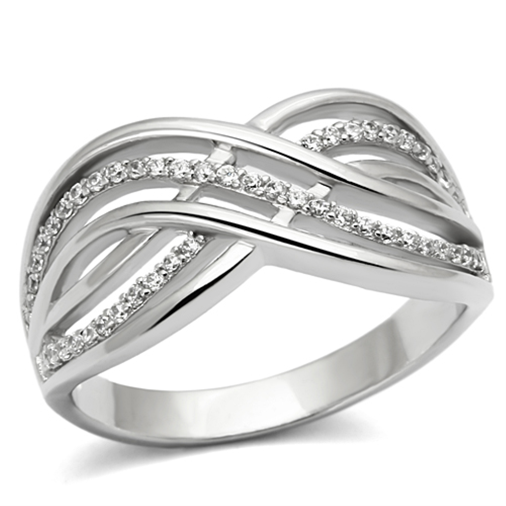 TS132 - 925 Sterling Silver Ring Rhodium Women AAA Grade CZ Clear