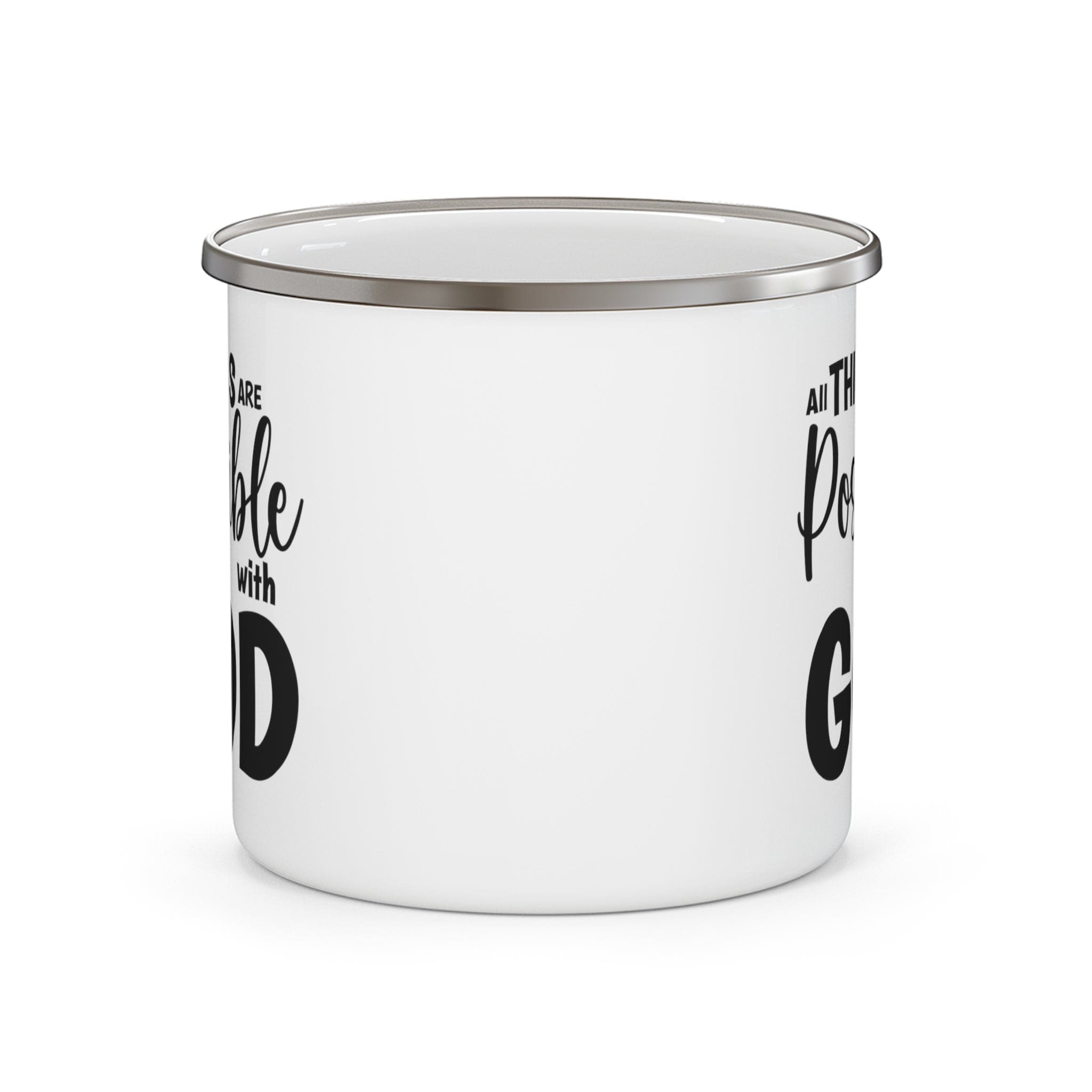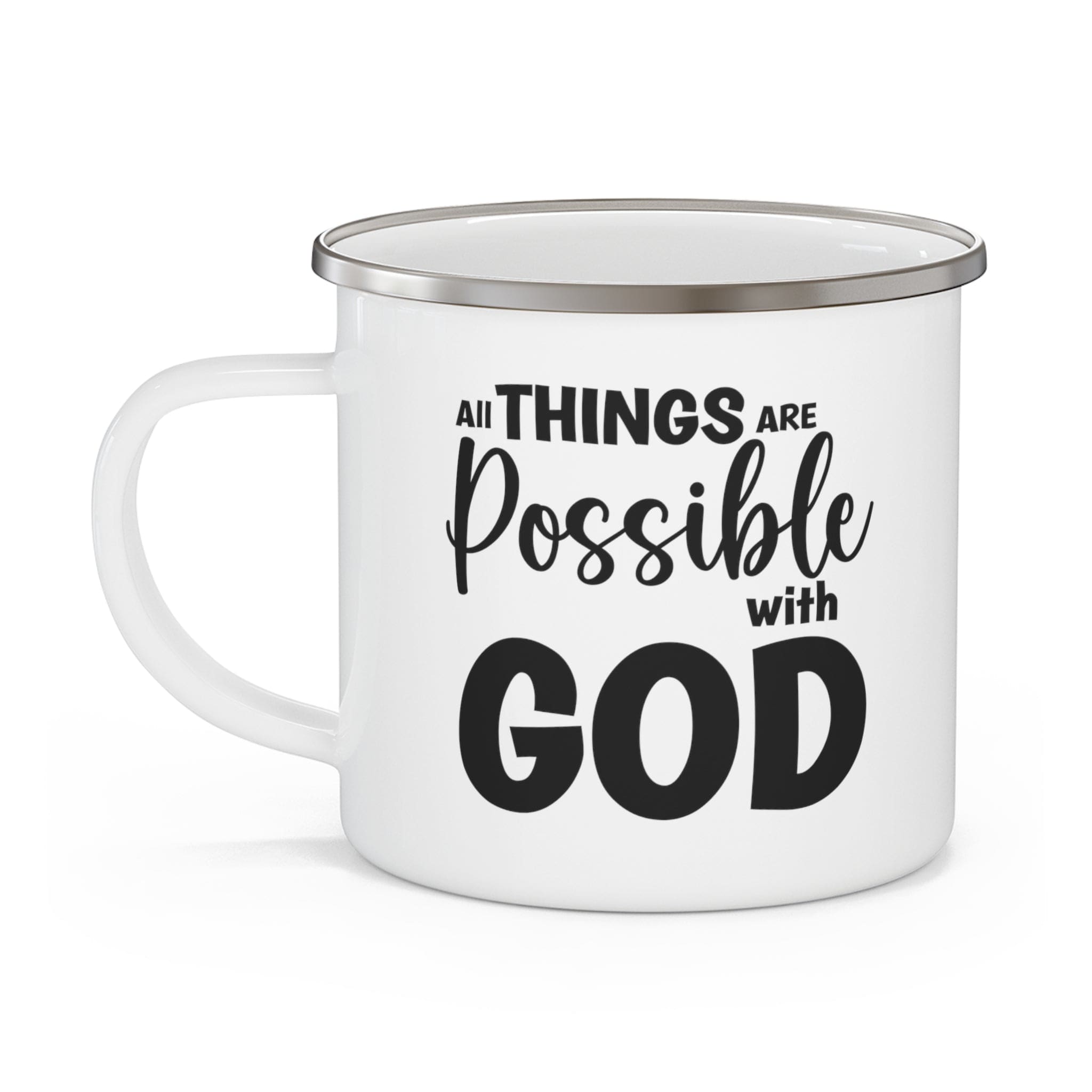 Enamel Camping Mug, All Things Are Possible With God - Black